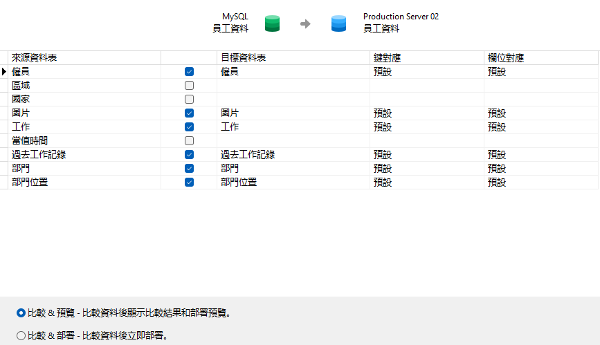 現在,你可以選擇不預覽結果並直接部署。Navicat 現提供以下兩個按鈕: