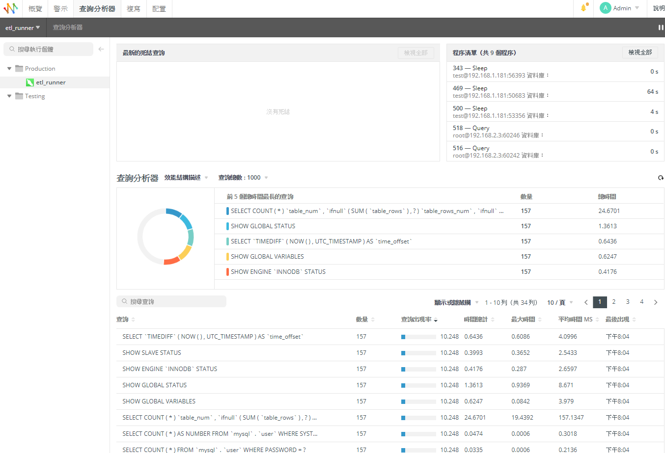 - 從伺服器擷取慢速查詢記錄(Slow Query Log)並分析資訊。