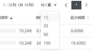 - 若要變更每頁的查詢數量,請按一下「X / 頁」並從清單選取值。