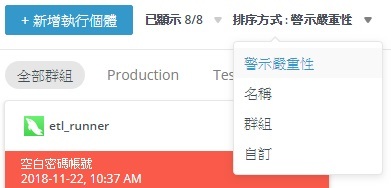 想要變更執行個體的順序嗎?只需按一下「排序方式」並選取一個排序選項。如果你選擇「警示嚴重性」,執行個體卡片將按照嚴重性層級(由重大到低)進行排序。選取「自訂」讓你根據需要移動執行個體的位置。為此,請按住執行個體卡片上的連線圖示,然後將該卡片拖放到所需的位置。Navicat Monitor 會自動記住你的自訂排序!