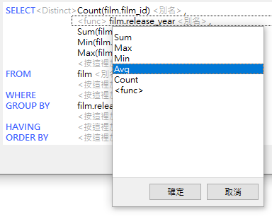 - 按一下 <Func> 標籤,然後從清單中選擇 COUNT。