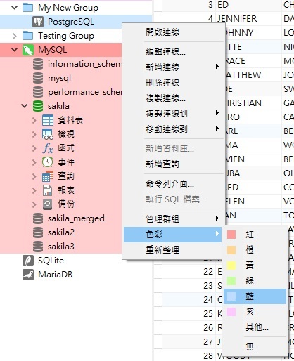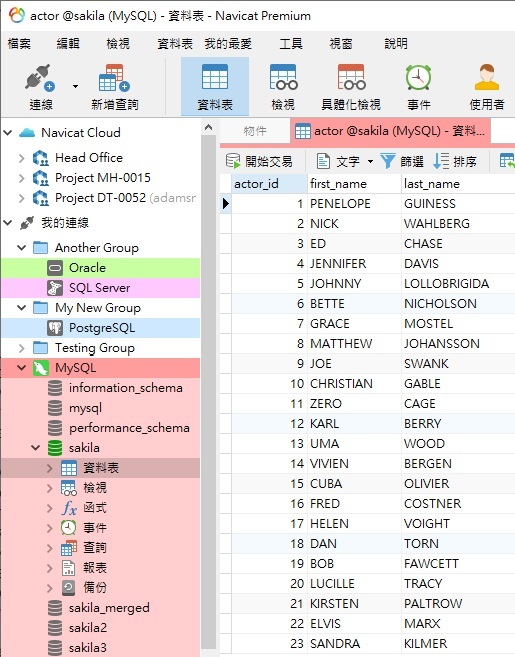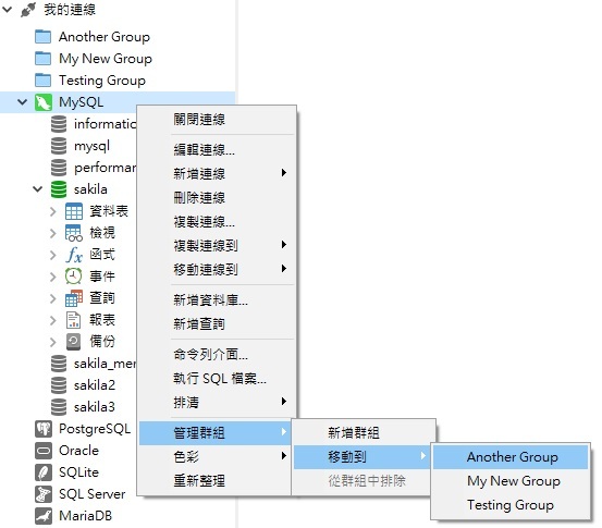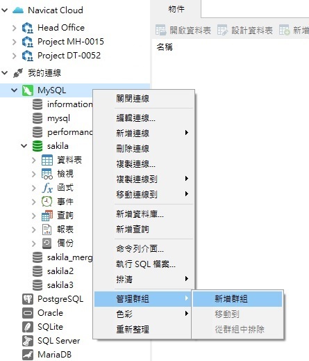 所有非 Essentials 版的 Navicat 資料庫管理和設計產品都提供虛擬分組功能,包括 Navicat for MySQL、MariaDB、SQL Server、SQLite、Oracle、PostgreSQL 和 Navicat Premium。