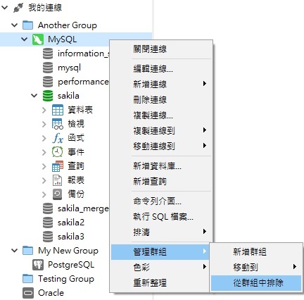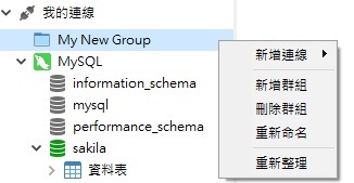 建立新群組後,在群組上按一下滑鼠右鍵將顯示一個內容功能表,讓你操作以下項目: