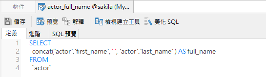 在「定義」索引標籤編寫 SQL。你甚至可以使用「檢視建立工具」幫助編寫語句!