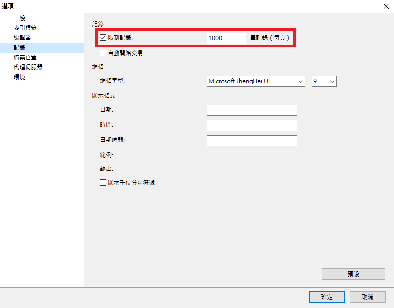 你可以在「記錄」選項螢幕上變更預設要顯示的記錄數量或關閉限制: