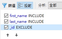 - 投射:允許我們選取要包含在分析中的欄位。可以使用欄位清單下方的箭頭按鈕排列欄位。