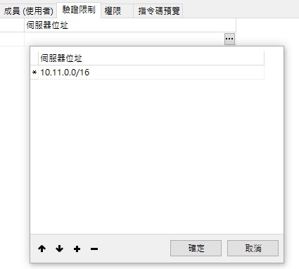 - 伺服器位址 -指定用戶端可以連線的 IP 位址或 CIDR 範圍清單。