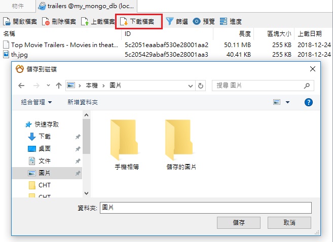 在 Navicat for MongoDB 儲存大型檔案