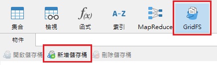 假設你有一個大型的影片檔案,並希望將它放入電影資料庫中。你就需要一個儲存桶來加入檔案,為此按一下工具列上的「新增儲存桶」按鈕,然後在「GridFS 儲存桶名稱」對話方塊中輸入儲存桶的名稱。