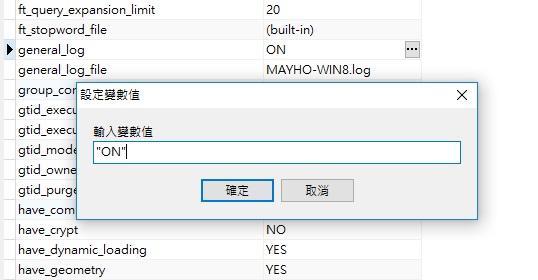 圖 3-在 Navicat 的伺服器監控工具中的 general_log 和 general_log_file 伺服器變數