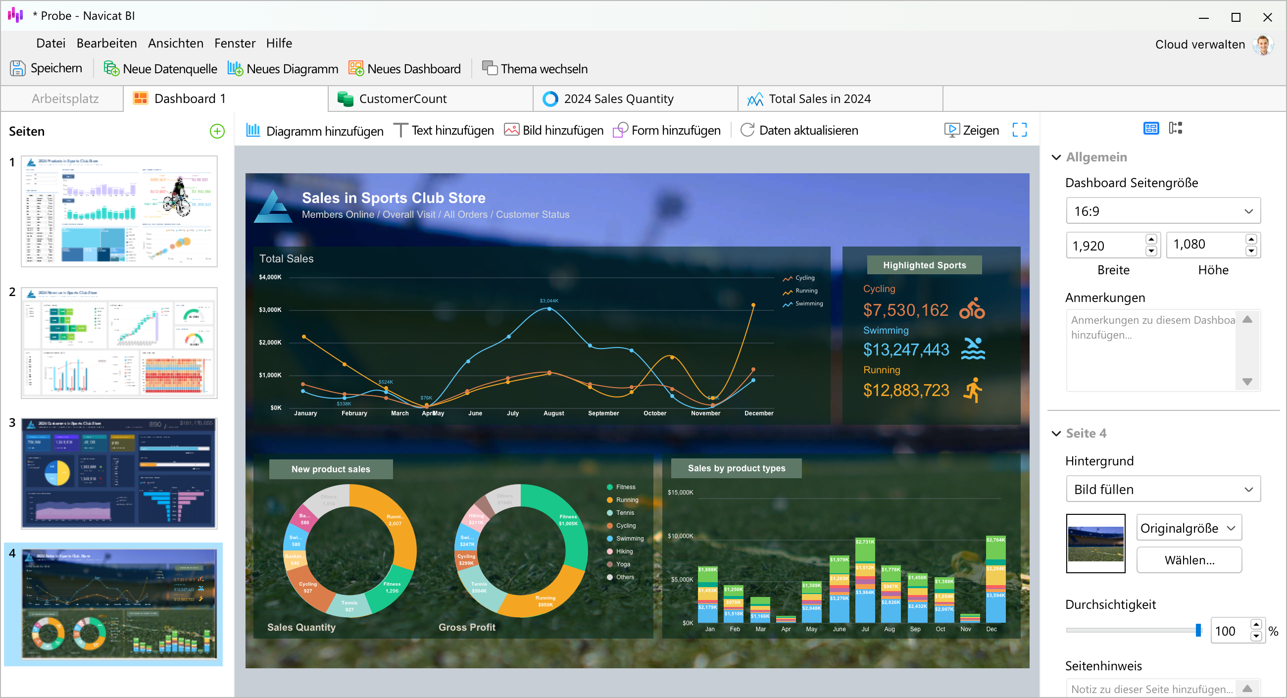 Wandeln Sie Ihre Daten in effektive Visualisierungen um, um Trends, Muster und Ausreißer zu erkennen. Alle Diagramme auf einem Dashboard, die dieselbe Datenquelle nutzen, können miteinander verbunden werden. Wenn Sie einen Datenpunkt in einem der Diagramme auswählen, werden alle anderen Diagramme auf der gleichen Dashboard-Seite, die mit dieser Datenquelle verknüpft sind, sofort aktualisiert, um Ihre Auswahl widerzuspiegeln. Vereinfachen Sie die Datenanalyse und teilen Sie Ihre Arbeitsbereiche mit Kollegen, um Ihre Geschäftsentscheidungen und -strategien besser zu unterstützen.