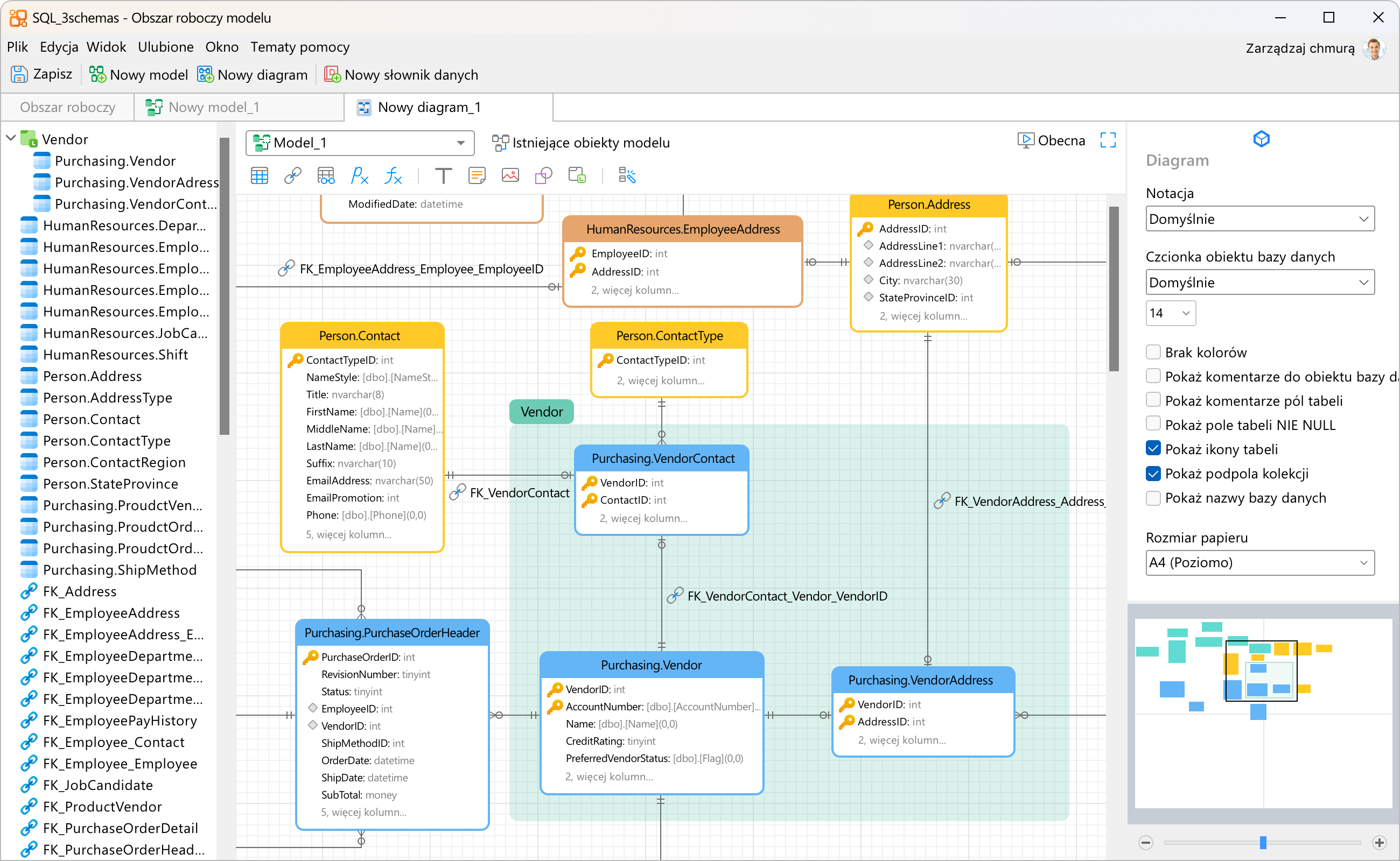 Konwertuj swoje bazy danych na reprezentacje graficzne, aby łatwo tworzyć złożone modele relacji encji i generować skrypty SQL jednym kliknięciem. Możesz budować wiele modeli w ujednoliconym obszarze roboczym, aby zilustrować różne obiekty na jednym diagramie. Ułatwia to nawigację i zrozumienie złożonych systemów.